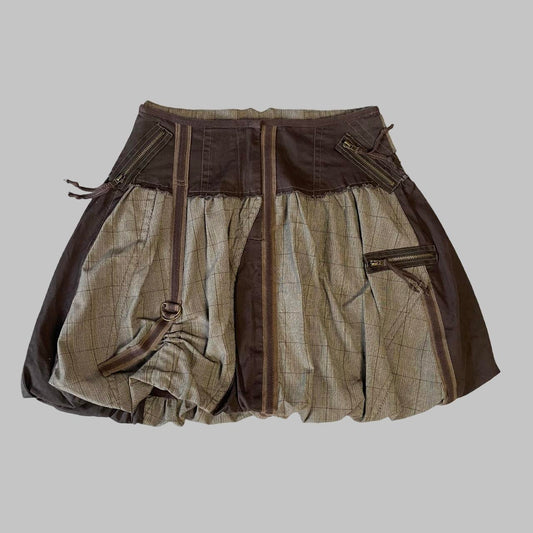 Multi-material brown bubble skirt.