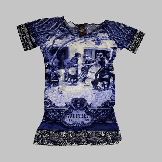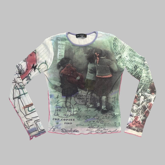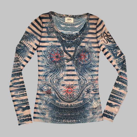 Jean Paul Gaultier tattoo print mesh top.