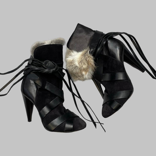 Isabel Marant rabbit fur ankle booties.