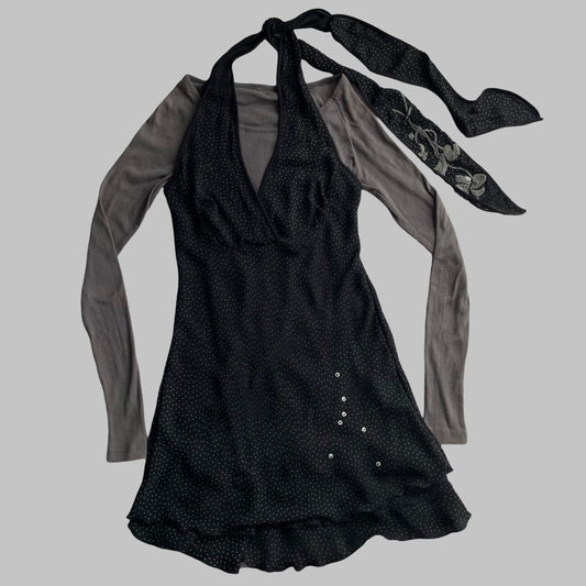 Cop copine layered black and grey polkadots mini dress.