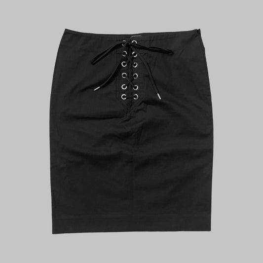 Jean-Paul Gaultier black lace up midi skirt.