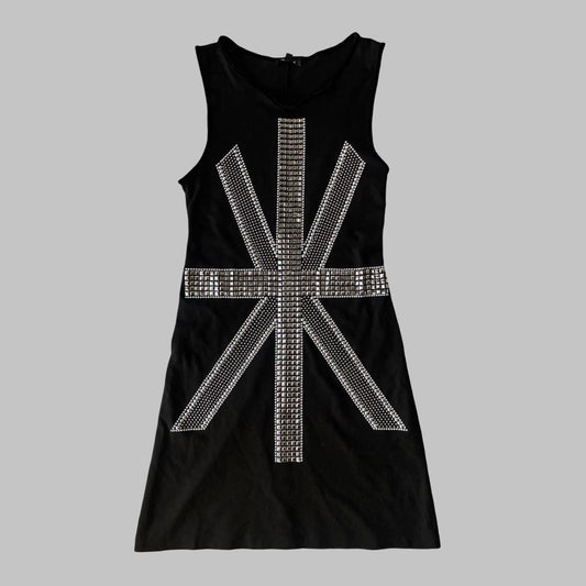 Black and silver mini dress with studded UK flag.