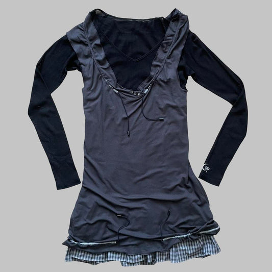 Cop Copine grey trompe-l’œil layered top.