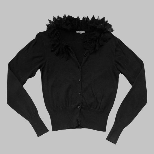 Jean Paul Gaultier black cardigan with lace collar.