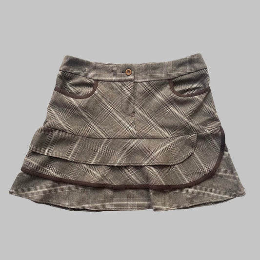 French brown and beige plaid mini skirt.