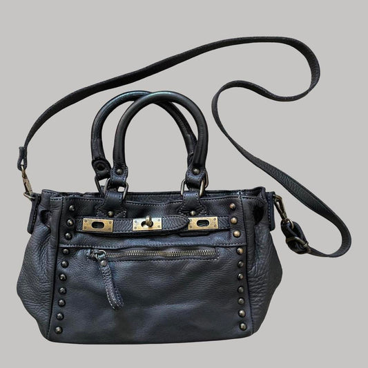 Black (small) leather firkin bag with studs.
