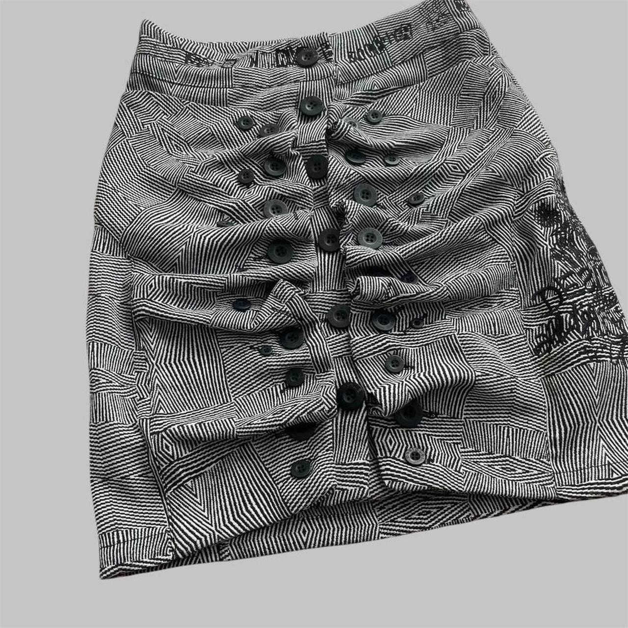 Vintage black and white Desigual textured skirt with all-over button detailing and embroidered graphic.