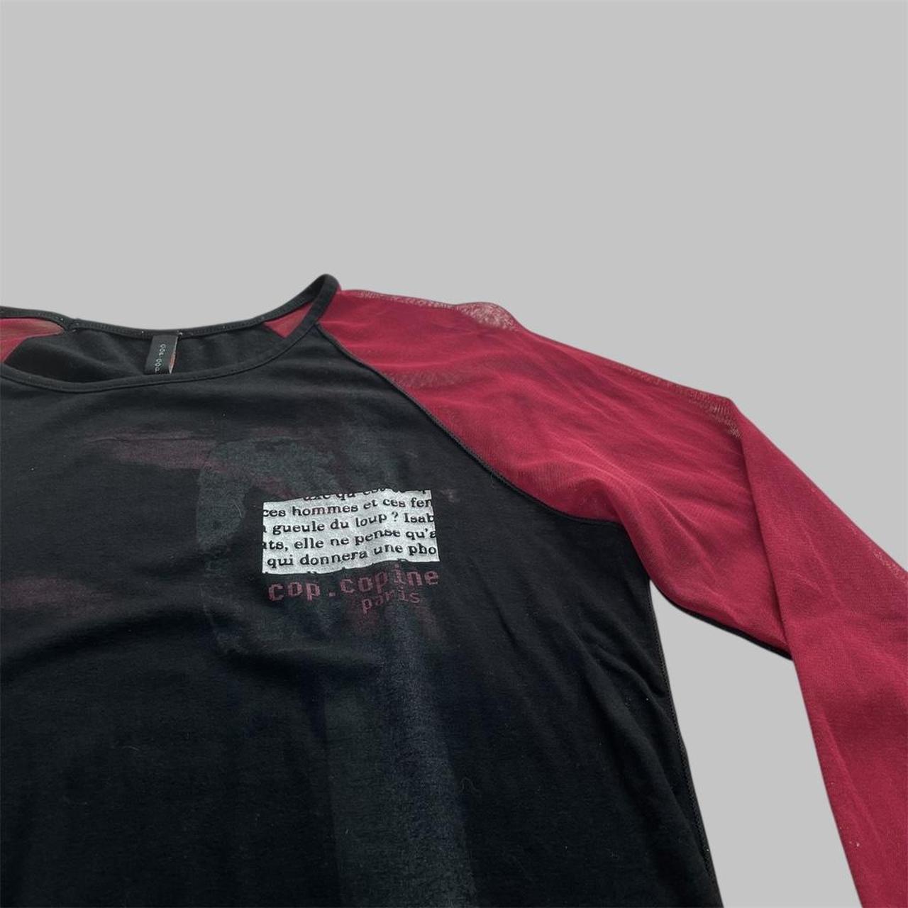Vintage Cop Copine bi-material top with black body and red mesh sleeves, featuring a subtle printed graphic detail on the front.