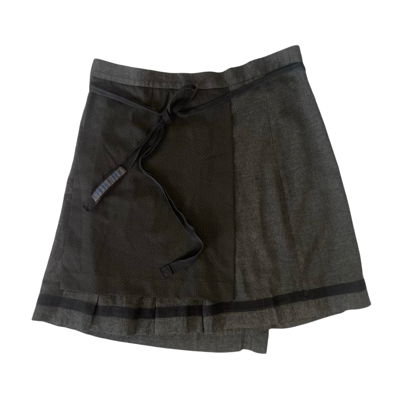 Vintage Cop copine bi-material (dark grey and black) wraparound midi skirt with cute polkadots pattern and adjustable ties.